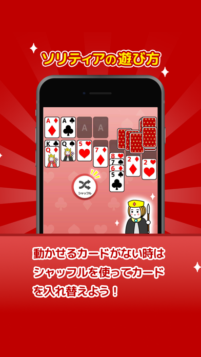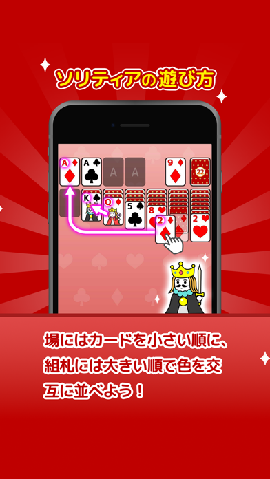 カードゲームの定番、ソリティアに挑戦しましょう。ソリティアでは、52枚のトランプを使って各スート(マーク)ごとにエースからキングまでを順番に並べることを目指します。ある程度の運も重要となっているので、深く考えすぎないことも大事です。