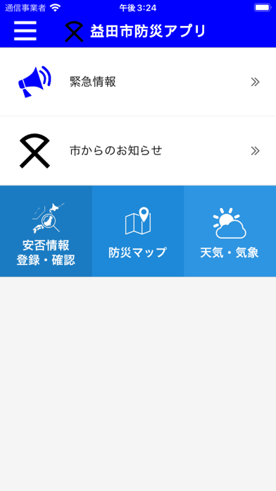 ブラウザに遷移する形ですが、安否情報と天気・気象情報にアクセスできます。天気はtenki.jpを参照する形。
