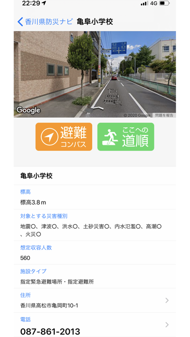 - 周辺の避難所を自動検索し避難経路を直感的にナビゲート