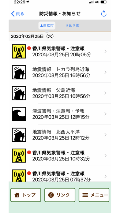アプリを開いていなくても、さまざまな災害情報をいち早くゲットできます。不要な情報はOFFにしておくことで通知がうるさく感じる心配もありません。素早く避難行動を開始するために通知を有効活用してみてはいかがでしょうか。