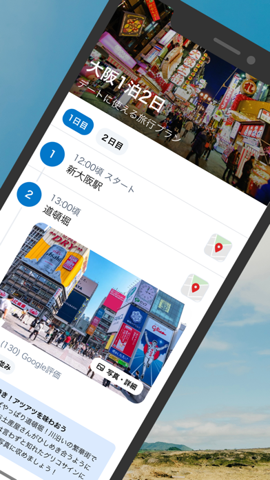 AIが旅行プランを数秒で作成し、観光スポットやホテルのルートまで提案してくれます。入力するのは目的地や日程、条件だけで、手間のかかるプラン作成を簡単に済ませることができます。