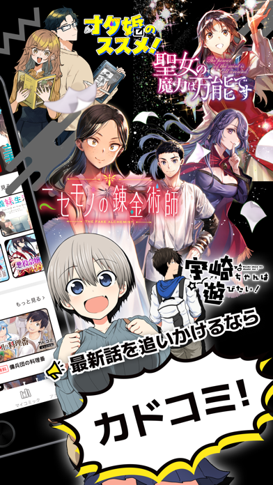 KADOKAWAのオリジナル作品が多数揃っているマンガアプリです。初回限定で全話無料の作品もあり、すぐに人気の連載に追いつくことができます。通勤中や寝る前など、空いた時間に気軽に楽しめるので、マンガ好きには特におすすめ。
