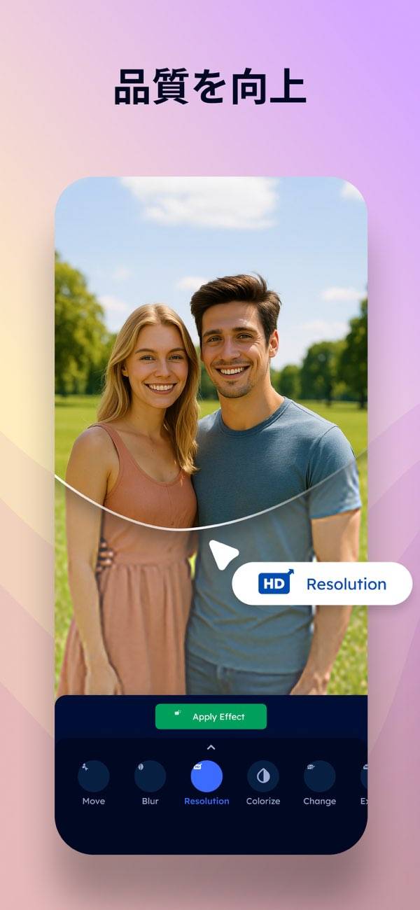 ぼやけた画像を修正して、高解像度にできます。どうしても使いたい写真がピントズレしてしまったり、古い写真で解像度が低かったりしても、キレイな写真に早変わり。最高の1枚を完成させられます。