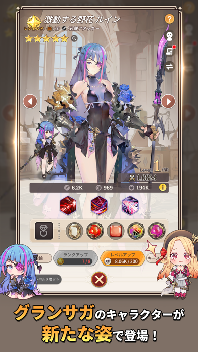 クエストクリアで得た報酬を使って、仲間を増やしましょう。序盤はサクサクとクエストをクリアできるので、召喚で増やせる仲間も膨大。原作『グランサガ』に登場した歴戦の猛者たちを編成して、最強の騎士団を作り上げましょう。