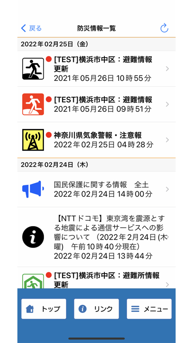 - 災害発生時には避難情報や避難所の開設状況が通知で届く