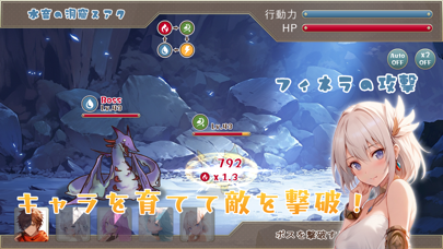 探索を進めていくと、個性豊かなキャラクターが仲間になります。バトルでは編成して仲間が活躍する、お手軽なオートバトルが楽しめます。お気に入りのキャラを育てて、自分だけの最強パーティをつくりましょう。