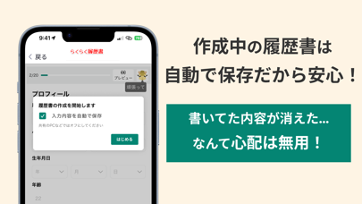 - 学歴・職歴は誕生日から自動で反映。入力の手間なく書ける