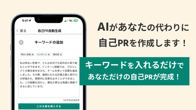 - 自己PRも志望動機もAIが作成。キーワードを選ぶだけでOK