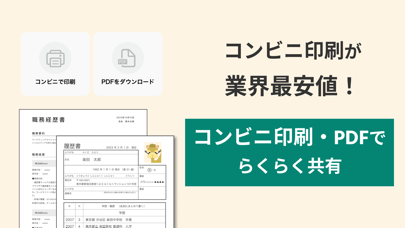 - コンビニ印刷に対応。紙の履歴書までスマホで完結できる