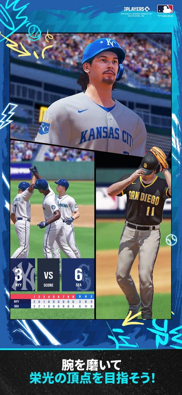 MLB公式ライセンスを受けた本格的な野球ゲームです。リアル選手データと連携して、2,000人以上のメジャーリーグ選手が実名で登場します。実際の試合では、リアルなピッチングとバッティングを体験でき、爽快感抜群です。MLBの魅力を余す所なく体感できるでしょう。