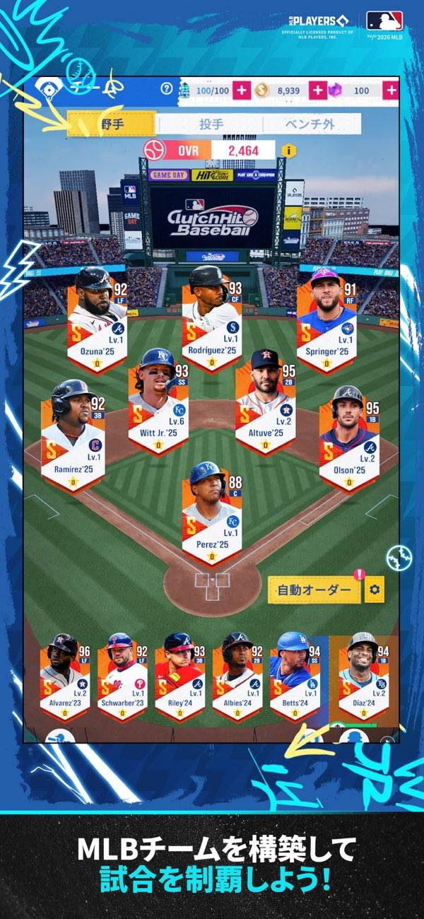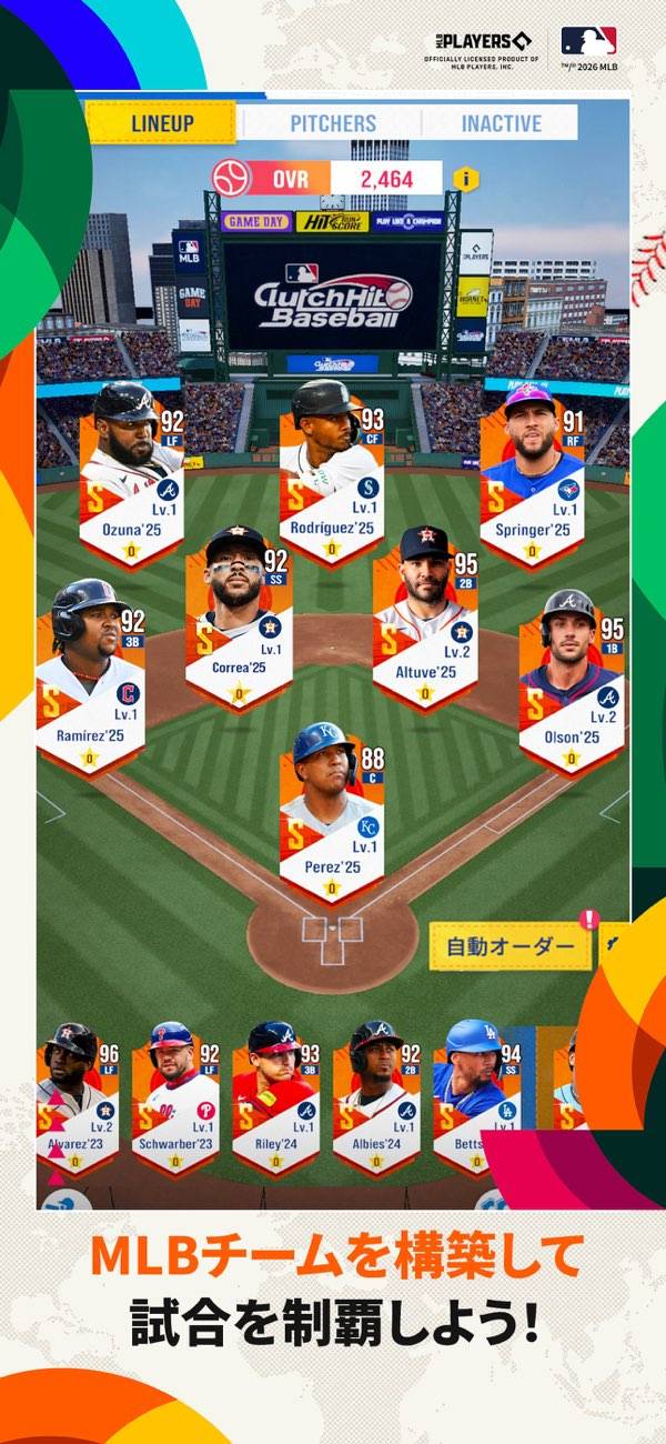 MLB公式ライセンスを受け、2,000人以上のメジャーリーグ選手が実名登場します。高品質なグラフィックで球場に立つ選手の顔、身体は必見です。なお、選手のチーム所属は現在の状況に一部反映されていないため、大谷翔平選手はまだエンゼルス所属です。
