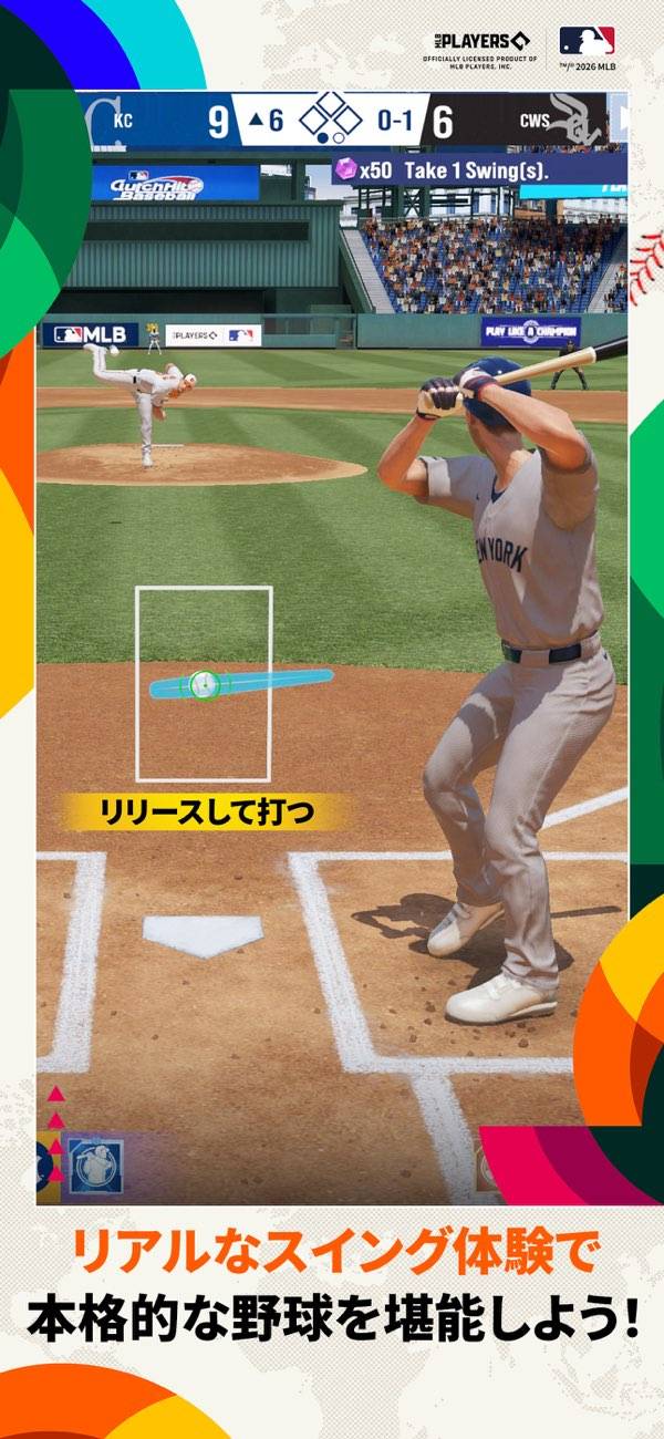 スマートフォンの直感的な操作で、リアルなピッチングとバッティングを体験できます。大リーグの球場で強烈な一発を打ち込むのは、超爽快感抜群でしょう。さらにモーションキャプチャによる選手たちのフォームも本格的ですよ。