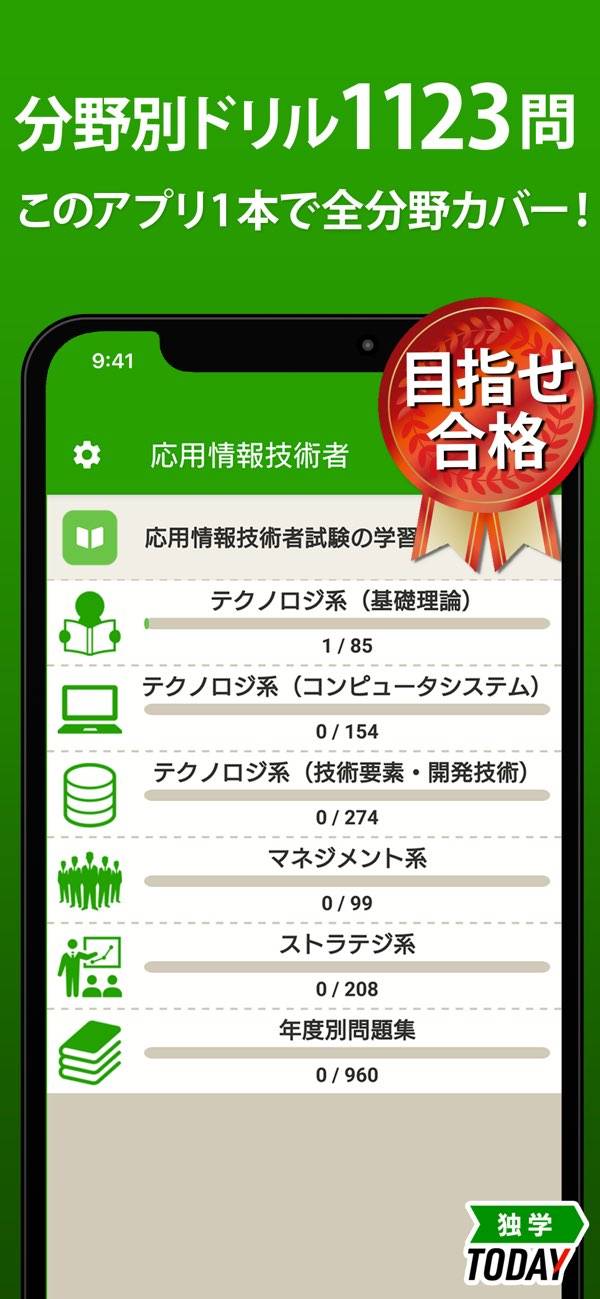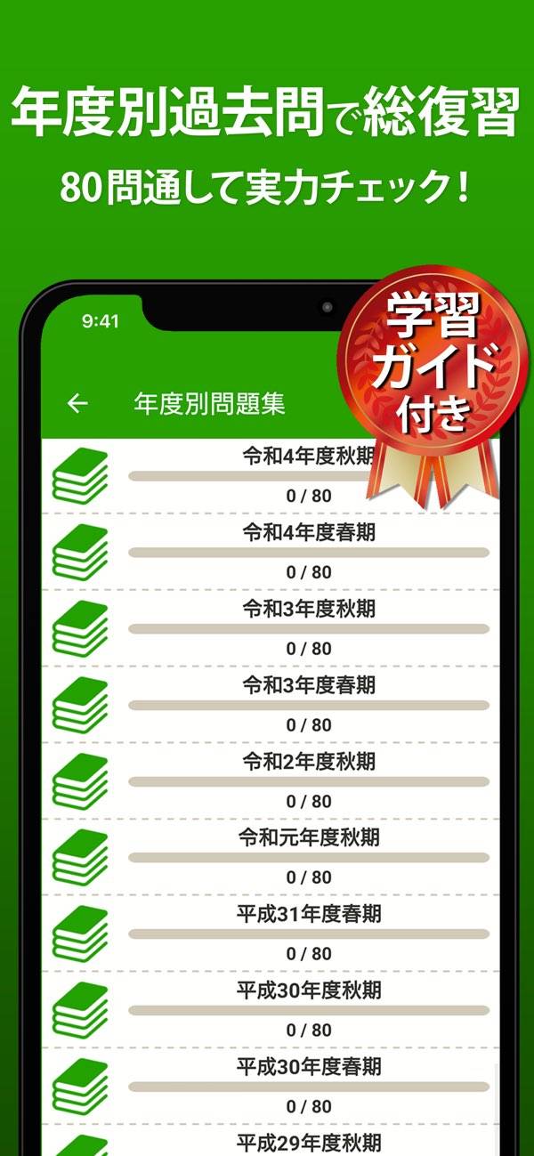 問題は5つのカテゴリに分かれていて、苦手な分野の克服がしやすいです。年度別問題集もあり、何度でも解きなおせるので合格に向けた本格的な勉強がこのアプリ1つでできます。