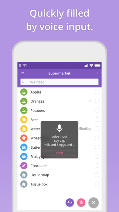 買い物リストを家族やパートナーのデバイスと共有できます。アプリ内の機能だけで行えるので、とても簡単。リストの変更があっても、最新の情報を瞬時に同期してくれるので手間がかかりません。
