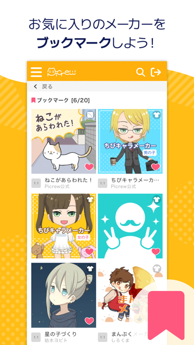 作った画像をディスカバリーに投稿してみんなに見てもらえます。どの絵柄を使っているかも表示されるので、作ったアイコンを共有しながら新しい絵柄を探すことができます。