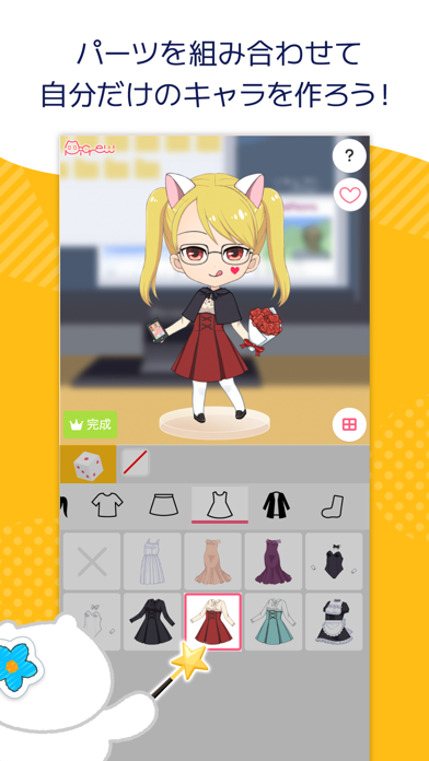 | 選べるパーツのデザイン | 顔の輪郭、耳、目、髪の毛など |