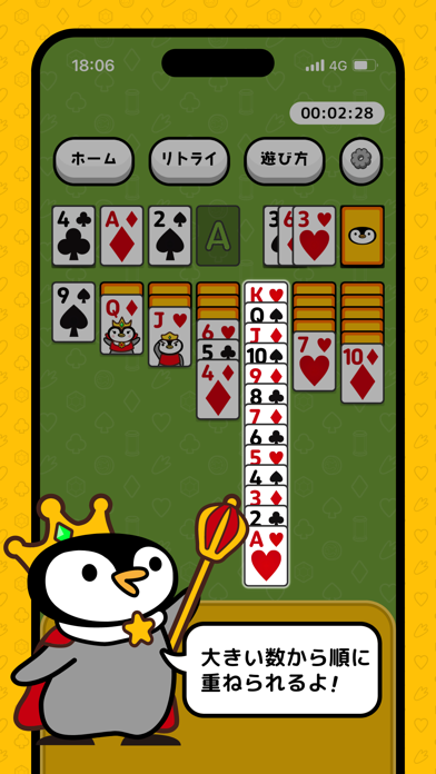 - ヒントなどお助け機能も充実。ソリティア初心者でも安心