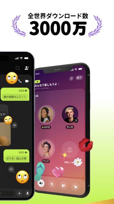 ボイスメッセージを瞬時にやり取りできるアプリです。ボイスメッセージを送信すると、相手に即通知。アプリ画面を開いていなくても、直接声が届きます。遠距離恋愛をしているカップルや、離れた友人に手軽に声を届けられるのが魅力。またスタンプやAIチャットも利用できます。