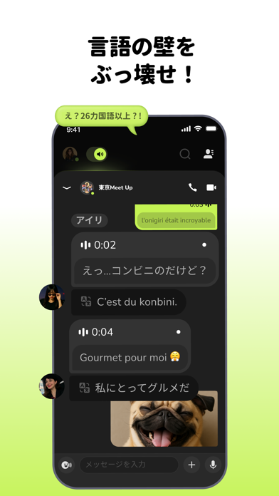 音声メッセージでAIとの会話が可能です。翻訳もできるので、手軽に国際的なコミュニケーションができます。また日常の困りごとも、AIに相談することで解決できるかもしれません。