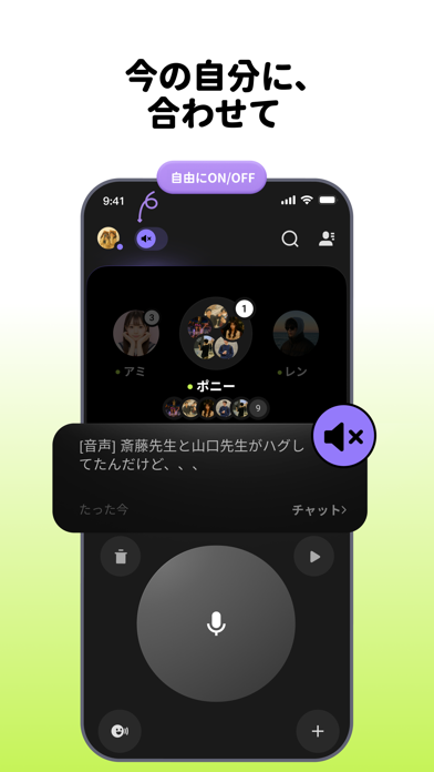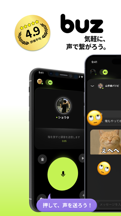ボイスメッセージのやり取りを、リアルタイムで行えるアプリです。ロック画面やほかのアプリ内からでも、即座に友達やグループに音声メッセージを送信可能。重要なメッセージはチャット履歴からいつでも確認可能で、確実なコミュニケーションが取れます。