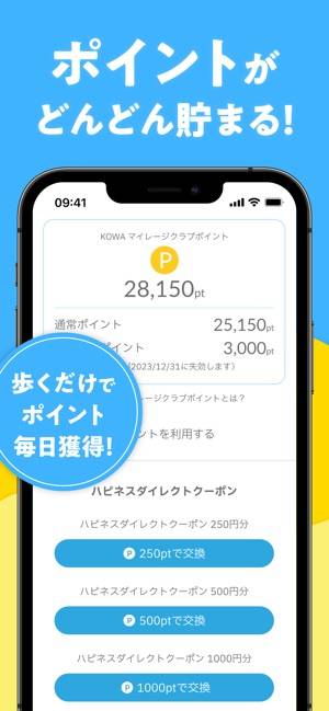 - ポイントは1pt=1円で、KOWAハピネスダイレクトで利用可能
