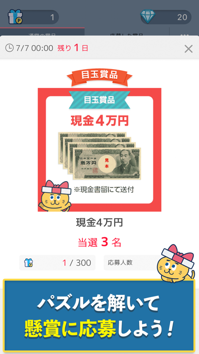 - 欲しい賞品に応募できる。1ポイント1口から応募可能