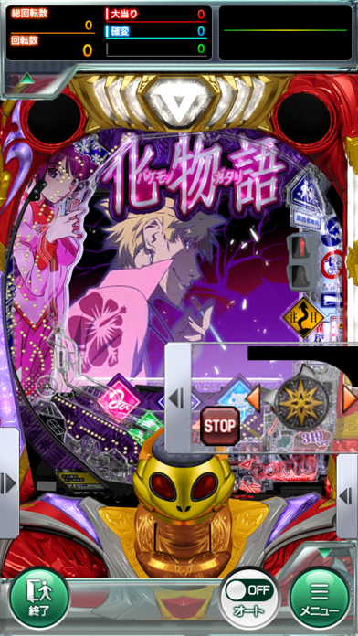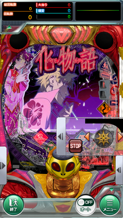 アプリ内には、さまざまな画面表示機能を搭載しています。より画面演出が楽しめるよう、デバイスを透過したり、オート機能が使えたりと、とにかく手軽に『P化物語 319ver.』が体験できます。経験者も初心者も楽しめる仕様になっているでしょう。