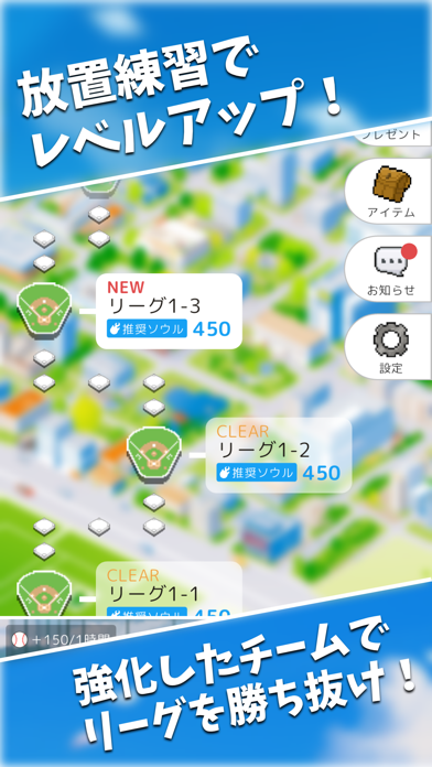 - 放置で練習(レベルアップ)! サクサクと野球チームを育成できる