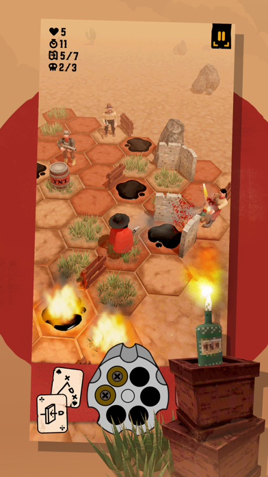西部劇を舞台にしたターン制シミュレーションゲームです。銃を構えて荒野で戦うウェスタン調の本作ですが、アクション要素はなく、あくまでも思考力が試される戦略ゲームです。六角形のマス目を移動しながら、敵に銃弾を撃ち込みましょう。少しでも選択を誤ると、銃弾が自らの身体を貫きますよ……。