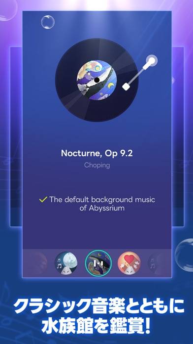 ピアノで奏でられる、クラシックの優しい旋律が深海の雰囲気をいっそう高めます。初期収録曲はショパンのNocturne,Op.9.2(夜想曲第2番)。ゲームを進めるとジムノペディ第1番、G線上のアリアなど、クラシックの名曲が少しずつ解放されていきます。