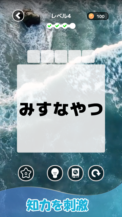 ひらがなの文字列を並び替えて、正しい言葉にしていく脳トレゲームです。「みすなやつ」が何に並び替えられるか瞬時に思い浮かびますか? 美しい背景とともに、リラックスしながら脳を鍛えられます。