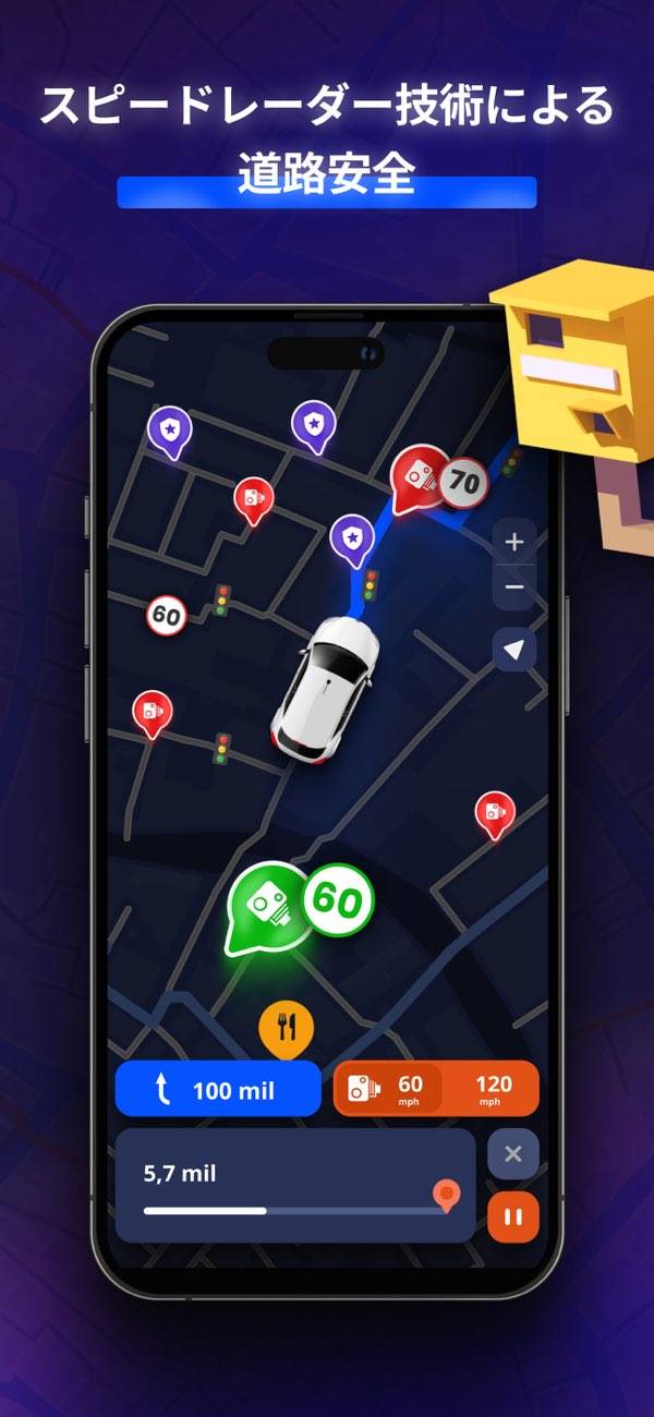 海外旅行中も安心してナビしてもらえるアプリです。インターネット接続が不要なオフラインマップで、ネットが繋がらない海外でもスムーズに移動できます。さらにレーダー機能では、車を運転中に周囲のトラフィックレーダーを感知することが可能。国内外問わず、安心してスムーズな移動ができますよ。
