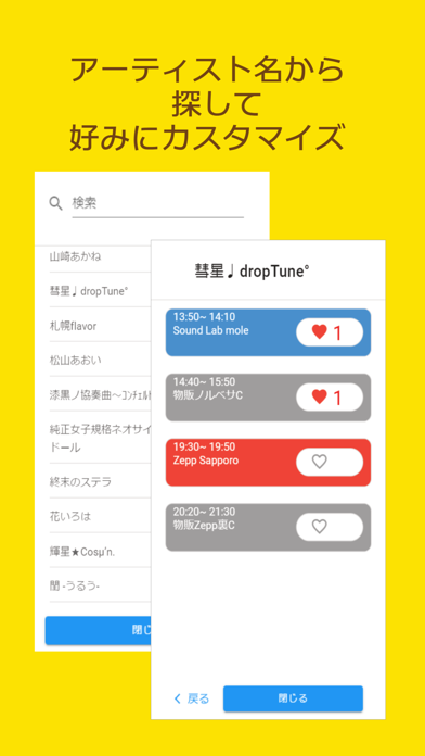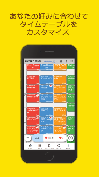 - アーティストをいいねして、自分専用のタイムテーブルを作成可能
