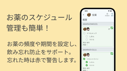 - カレンダー機能で医療ケアや投薬スケジュールを記録できる