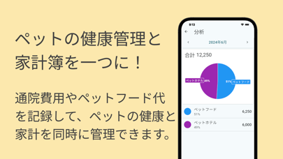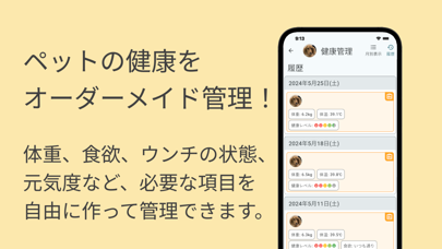 - ペットの健康管理を手軽に記録できるアプリ。ペットごとに管理可能