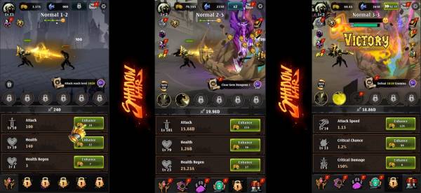 ゲーム本編では、基本的にオートで敵を攻撃してくれます。主人公や敵、背景にいたるまで暗くダークな世界観が特徴ですが、そこにエフェクトの色彩が華を添えてくれます。ステータス強化も手軽にタップで利用できるため、バトルと育成を交互に楽しみましょう。