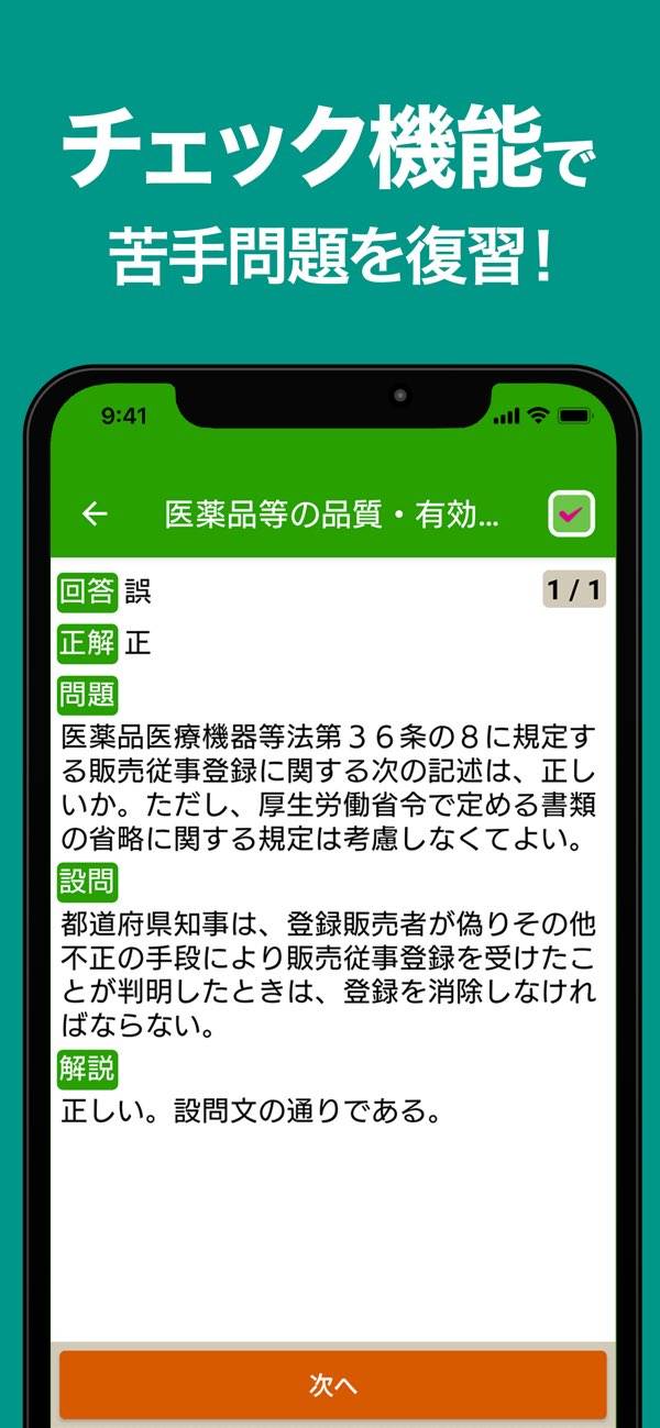 合格率50%ほどを推移する中、資格取得に近づくために。ドラッグストアなどで一般医薬品を販売するのに欠かせない資格「登録販売者」の試験対策アプリです。