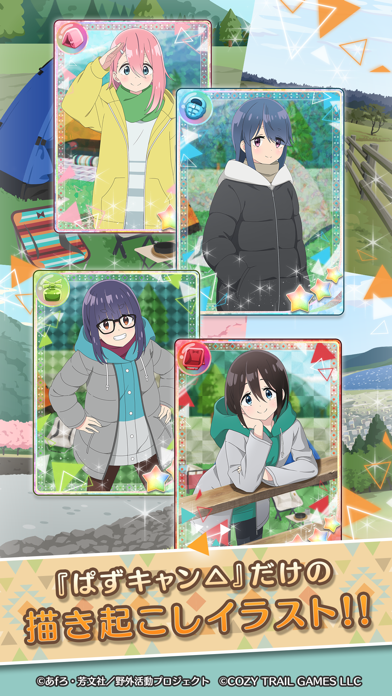 TVアニメ『ゆるキャン△』を題材にしたパズルゲームです。原作では山梨・静岡の自然とともにキャンプノウハウが描かれており、各種メディアで話題になりました。アプリ版では、お馴染みのキャラクターたちが登場するだけではなく、時間制限式の3マッチパズルゲームが楽しめますよ。