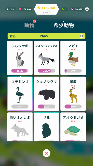 自然にあふれて、動物たちが賑やかに暮らす島を発展させましょう。各スポットは、放置したり、タップしたりするとゲーム内通貨を獲得できます。それらを活用して、自然を蘇らせて動物を迎え、さらなる新しい島を作り上げていくのが目的です。