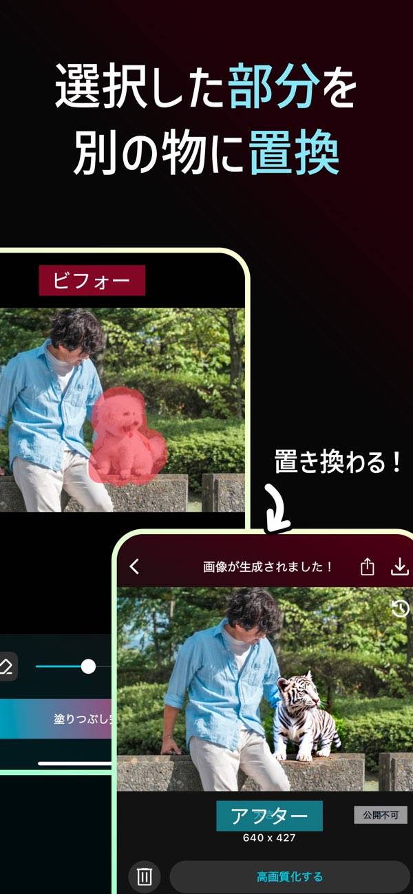 - 画像の高画質化機能も搭載。端末に保存する際にも見栄えよく