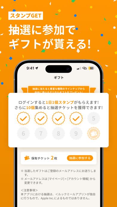 - 起動するだけでスタンプをゲット! 抽選でギフトを獲得できる