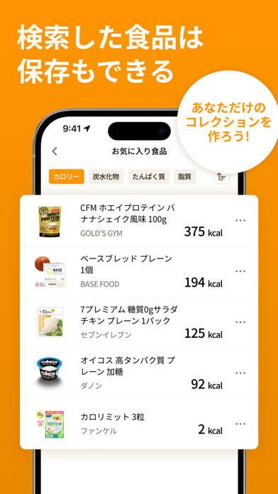 コレクション機能は、検索した食べ物を登録しておけます。よく食べる商品を登録しておけば、いちいち検索する必要がなくカロリーをチェック可能。カテゴリ分けもできるので「よく食べるもの」や「食べちゃダメ」などでわけておくと探しやすいです。