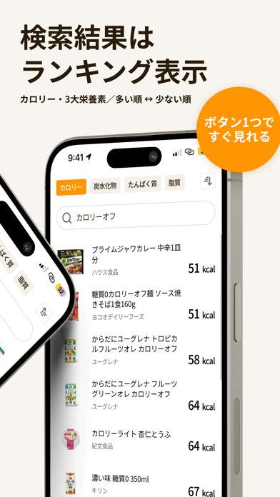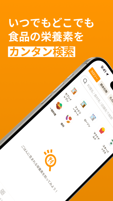 コンビニやファストフード店の食べ物のカロリーを検索できるアプリ