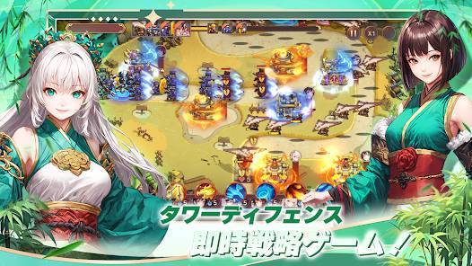 見た目の華やかさの裏に隠れたゲーム性に要注目。三国志の武将が容姿端麗な少女となって登場するタワーディフェンス(TD)です。