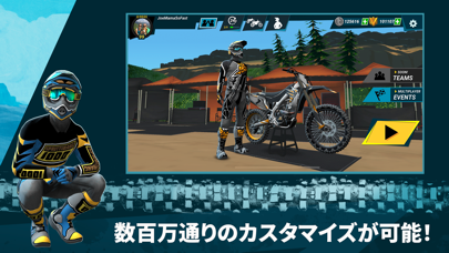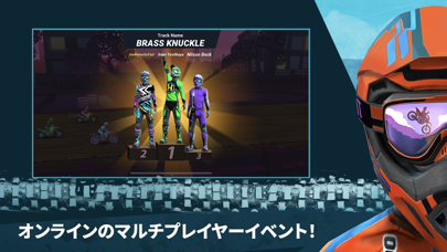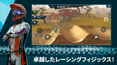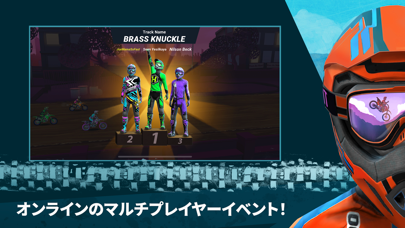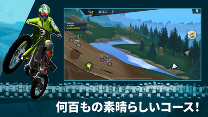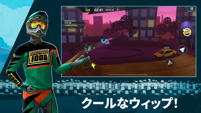 簡単操作でモトクロスの興奮を体験。スロット(アクセル)、ブレーキ、左右の姿勢制御が基本操作。ゲーム的な要素としてナイトロによる超加速が可能です。