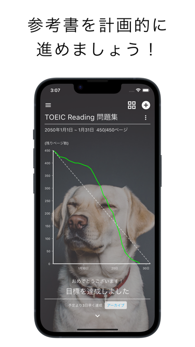 参考書のページ数、勉強の開始・終了期日を設定すると、1日に進めるべきページ数を計算。加えて、本来進めるべきペースと実際のペースをチャートで見比べながら、意識して勉強に取り組める寸法です。