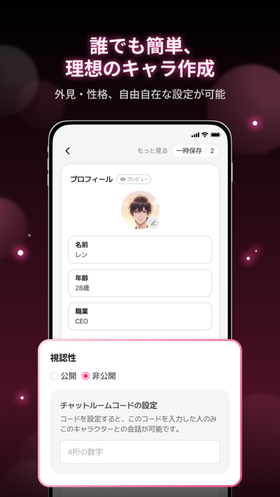 - 性格、口癖、シチュエーションも。自由に設定して理想のキャラ作り