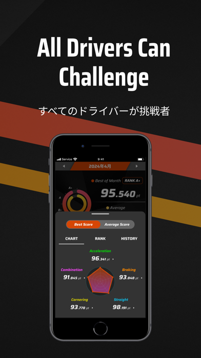 スコアとは別に、C~A+までのランク分けも用意されています。平均との比較も可能。やはり低いランクだと気になるもの。またランクがあるとつい目指したくなる性分の人もいるでしょう。A+を目指し、安全なドライビングテクニックの向上に励めます。