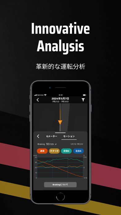 - スピードや前後左右のGも計測。偏りのない運転技術の向上にも