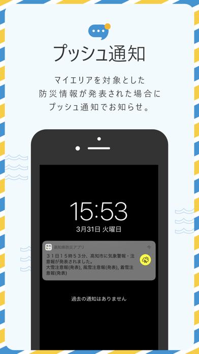 高知県に在住であれば、万が一に備えて用意しておきたい防災アプリです。防災マップや情報の通知機能など、防災アプリとしてほしい機能は一通り網羅。